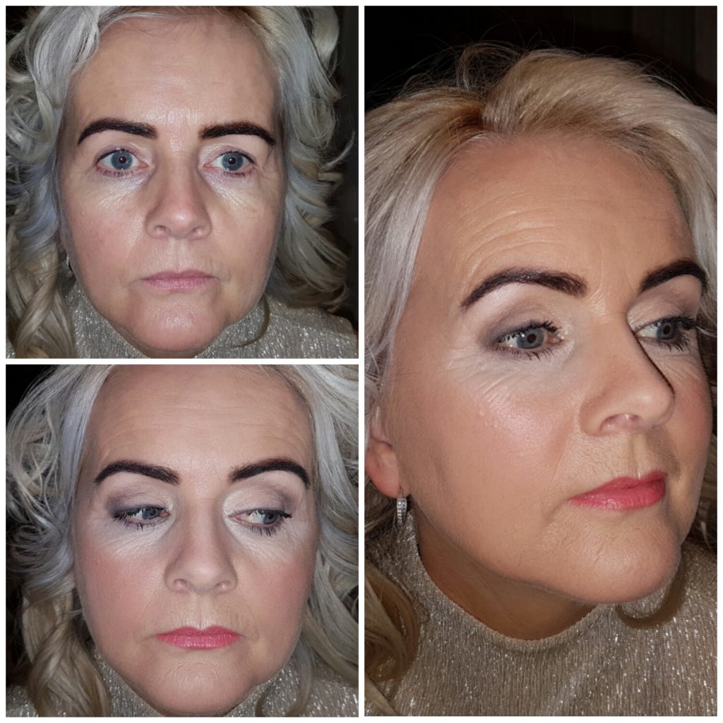Frænka mín varð fimmtug í desember síðastliðinn og fékk mig til þess að gera sig fína fyrir afmælisveisluna. Ég notaði góðan fljótandi farða, laust púður og matta augnskugga í jarðarlitum en ég setti smá highlighter í augnkrókana.