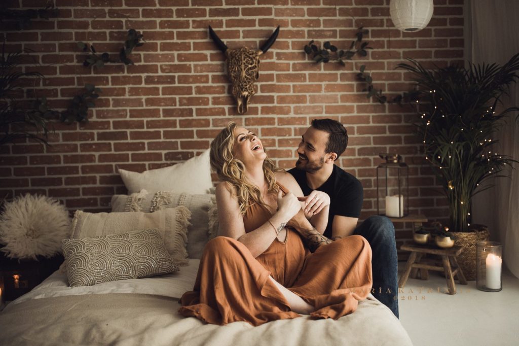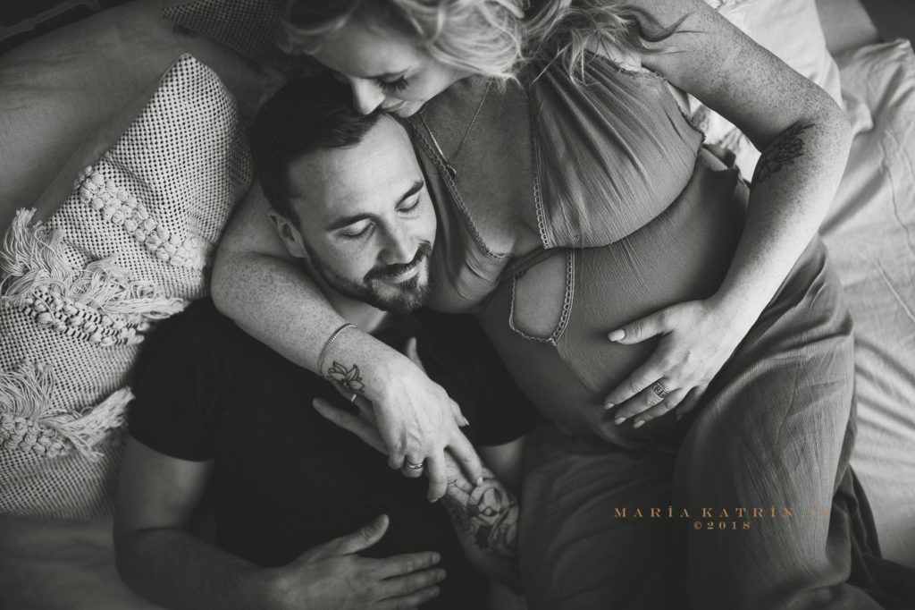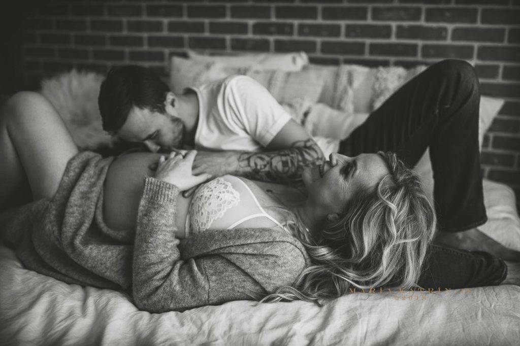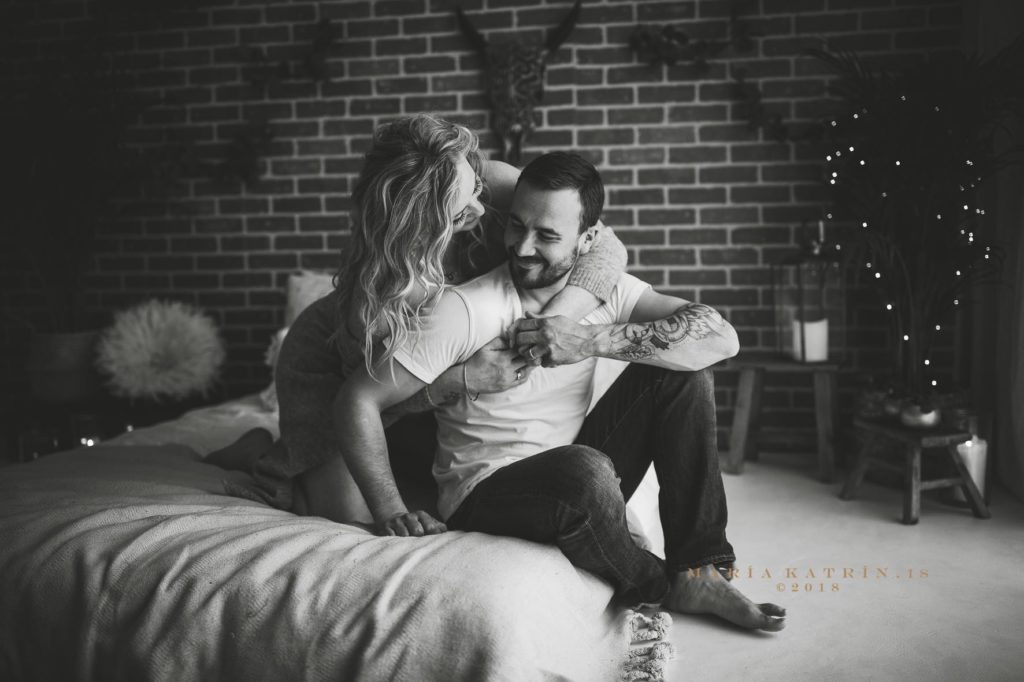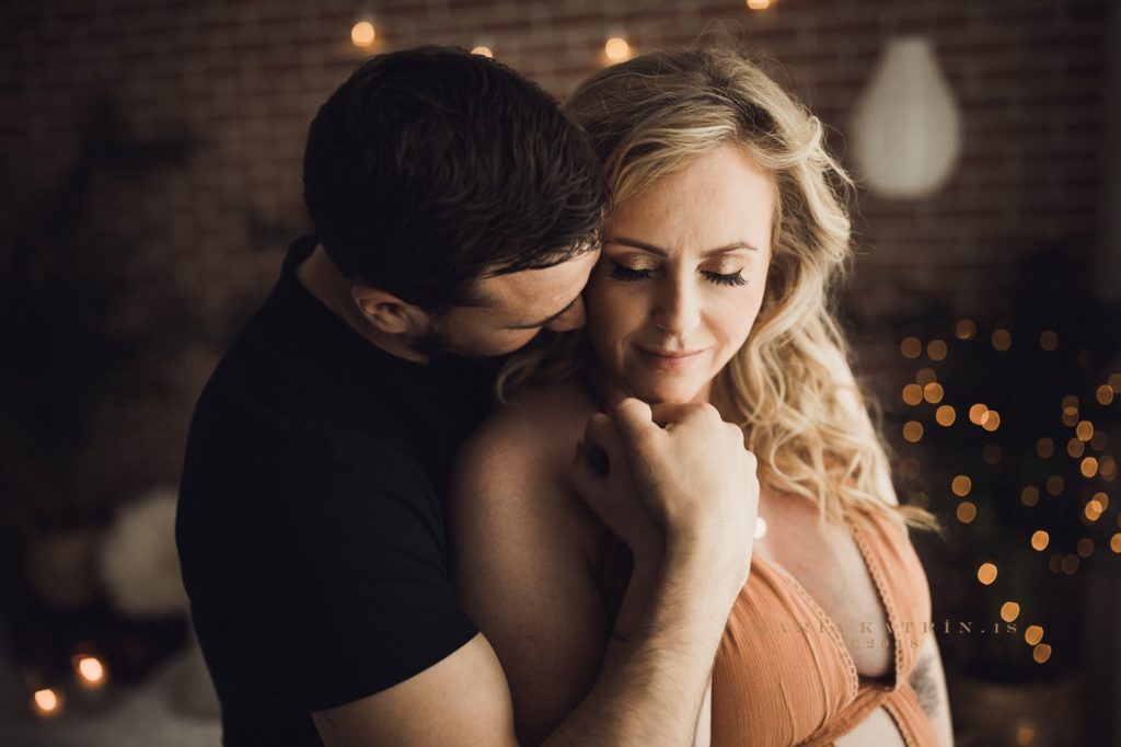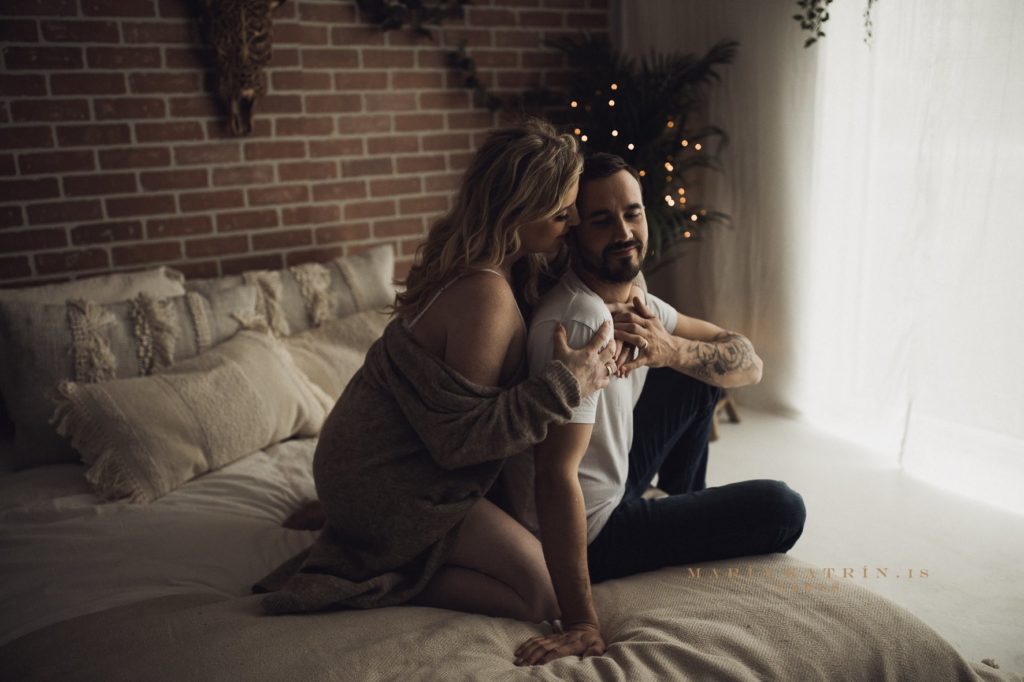 Og að myndatökunni sjálfri! Vá ég get varla líst því hvað ég er ánægð með útkomuna. Ég fór til hennar Maríu Katrínar í myndatöku og hef ég verið aðdáandi hennar í dágóðan tíma. Stílinn hennar er svo rómantískur, myndirnar svo fallegar og í senn smá sexý. Við ákváðum að gera nokkra stíla, þó svo að það sé ekki vanalega gert í myndatökum hjá henni heldur er oftast valið um annað hvort paramyndatöku eða svokallaðar bumbumyndir af verðandi móður. Ég er svo glöð að eiga þessar dásamlegu myndir af mér og eiginmanni mínum í þessu fallega setti sem hún er með. María Katrín er fagmaður fram í fingurgóma og hefur einstakt lag á því að láta manni líða vel fyrir framan myndavélina sem er alls ekki sjálfgefið, einnig var andrúmsloftið alveg einstaklega afslappað inní stúdíói hjá henni. Þar að auki tekur hún einnig ofsalega fallegar ungbarnamyndir sem ég ætla að sýna ykkur í annarri færslu, en auðvitað skelltum við okkur með litlu dömuna í ungbarnamyndatöku til hennar líka. Ég mæli með því að kíkja á heimasíðuna hennar www.mariakatrin.is eða síðuna hennar á Facebook María Katrín ljósmyndari fyrir frekari upplýsingar. Núna ætla ég bara að leyfa myndunum að tala sínu máli, en þær segja allt sem segja þarf.